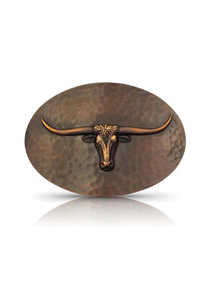 Montana Silversmiths 40510CBB-767M Vintage Bronze Cascade Longhorn Oval Buckle – Beautifully simple, this vintage bronze finished oval buckle has a lightly hammered texture to its surface, the dimpling creating a rippling water effect. A large detailed longhorn figure is applied to the center of the buckle. Each buckle is hand-buffed giving every buckle a variation of its own. Longhorn finish color can range from a light gold tone to a deep vintage bronze. Standard 1.5 inch belt swivel.