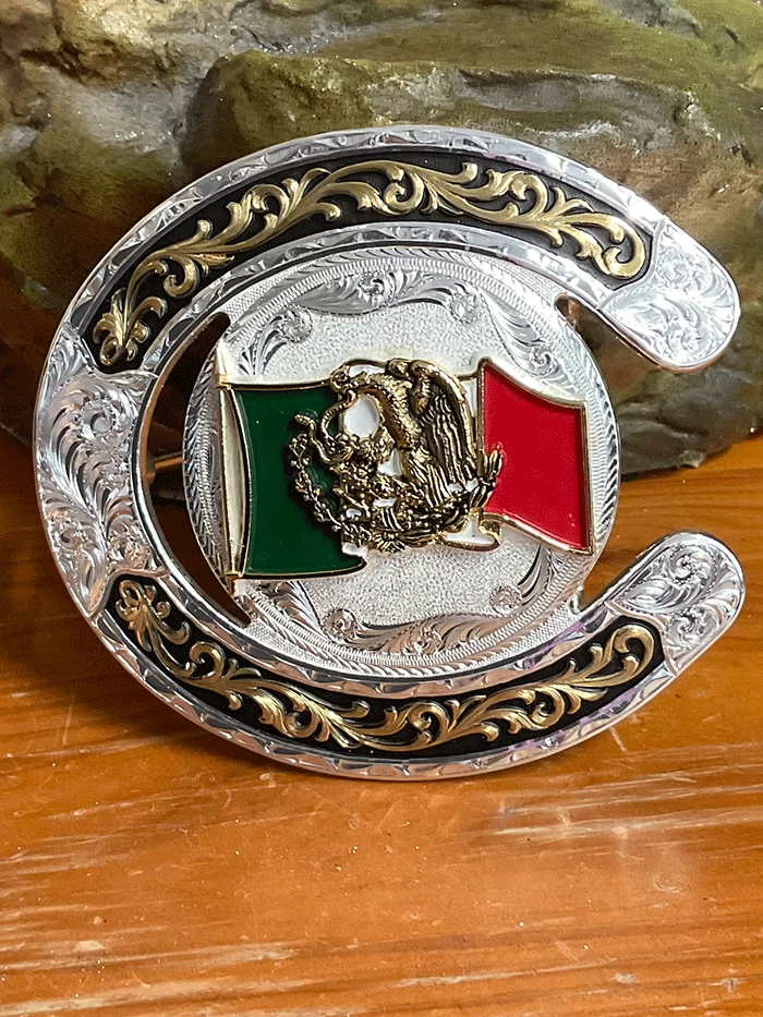 Montana Silversmiths 61375-219 Horseshoe Shape Mexican Flag Buckle