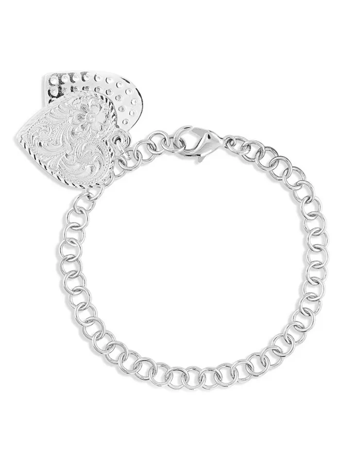 Montana Silversmiths BC5163 Womens Country Charm Duo Heart Bracelet Silver -teal their hearts twice with the Montana Silversmiths® Country Charm Duo Heart Link Bracelet! The stunning charm bracelet has a beautiful silver chain with round links to secure the 2 heart charms.