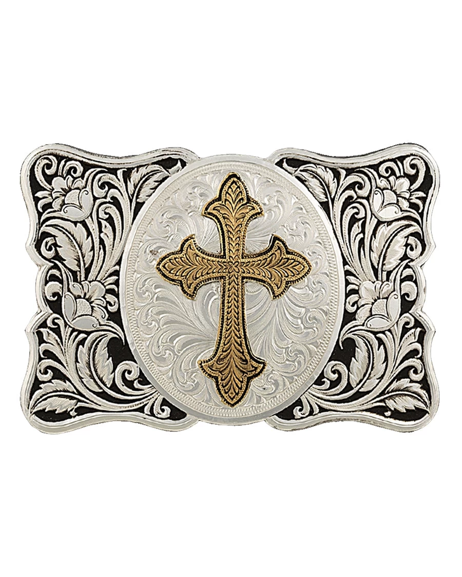 Montana Silversmiths Floral Cross Western Belt Buckle