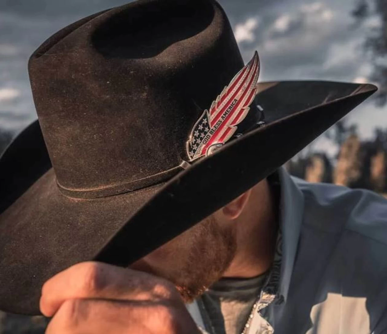 The stars and stripes like you have never seen them before. This proud hat feather is sure to attract attention. The words God Bless America are boldly displayed down the center of the feather. Bold red and blue paint adds a patriotic flair. Secure this stunning and beautifully made hat feather to your hat band to show off your proud American spirit.