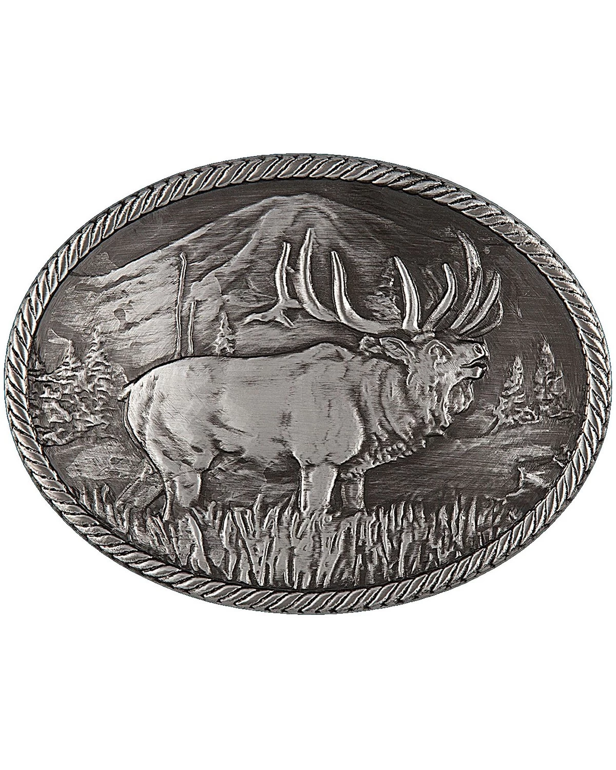 Montana Silversmiths presents its Hoss collection, a series of buckles carved from solid metal and finished in sterling silver. The pieces are based on original relief sculptures and have been miniaturized to be put onto a buckle. The classic image of a majestic elk standing in front of a mountain takes the center of this traditional western buckle. Rope trim frames the center design. The men’s silver belt buckle is designed to fit a standard 1 1/2″ belt swivel. For nearly 40 years, Montana Silversmiths has focused on producing and offering products of exceptional value. Nestled in the tiny hamlet of Columbus, MT, they’ve grown to become the largest supplier of western jewelry, watches, home decor, and legendary buckles to the industry. Handcrafted silver, rich in western heritage, is the very core of Montana Silversmiths.