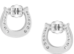 Rhodium over brass. Synthetic turquoise. Cubic zirconia. Stainless steel post back wire.