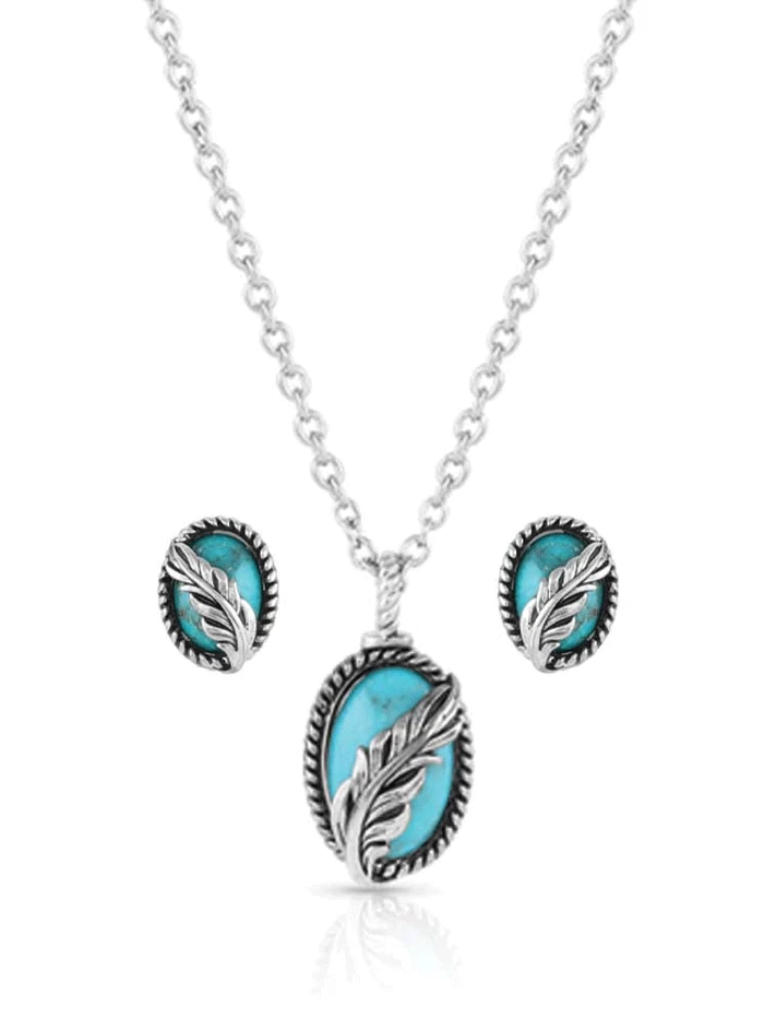 Montana Silversmiths JS5375 Womens World’s Feather Turquoise Jewelry Set Silver