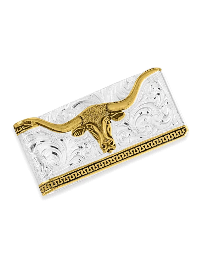 Montana Silversmiths MCL5235 Two-Tone Carved Longhorn Money Clip Silver
