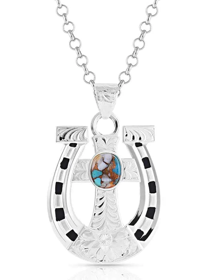 Montana Silversmiths NC5014 Womens Sole to Soul Horseshoe Cross Necklace Silver