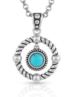 Montana Silversmiths NC5304 Womens Every Direction Turquoise Necklace Silver – The Every Direction Turquoise Necklace is breathtaking from every angle. A circular twisted rope with four equidistant balls creates the pendant. Swinging in the center of the earrings is a round turquoise stone. Another twisted rope surrounds the turquoise stone, and a silver-tone 19 inch chain completes the design.