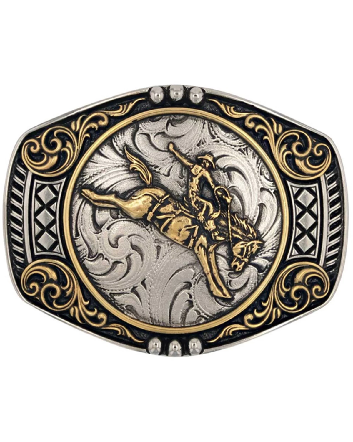 Montana Silversmiths 1340-528 Bull Rider Gold Rope Trimmed Engraved Buckle Silver