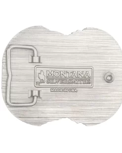 This Montana Silversmiths belt buckle shows off a bold western motif. For nearly 40 years, Montana Silversmiths has focused on producing and offering products of exceptional value. Montana Silversmiths is the largest supplier of western jewelry, watches, home decor, and legendary buckles in the industry. Handcrafted silver, rich in western heritage, is the very core of Montana Silversmiths.