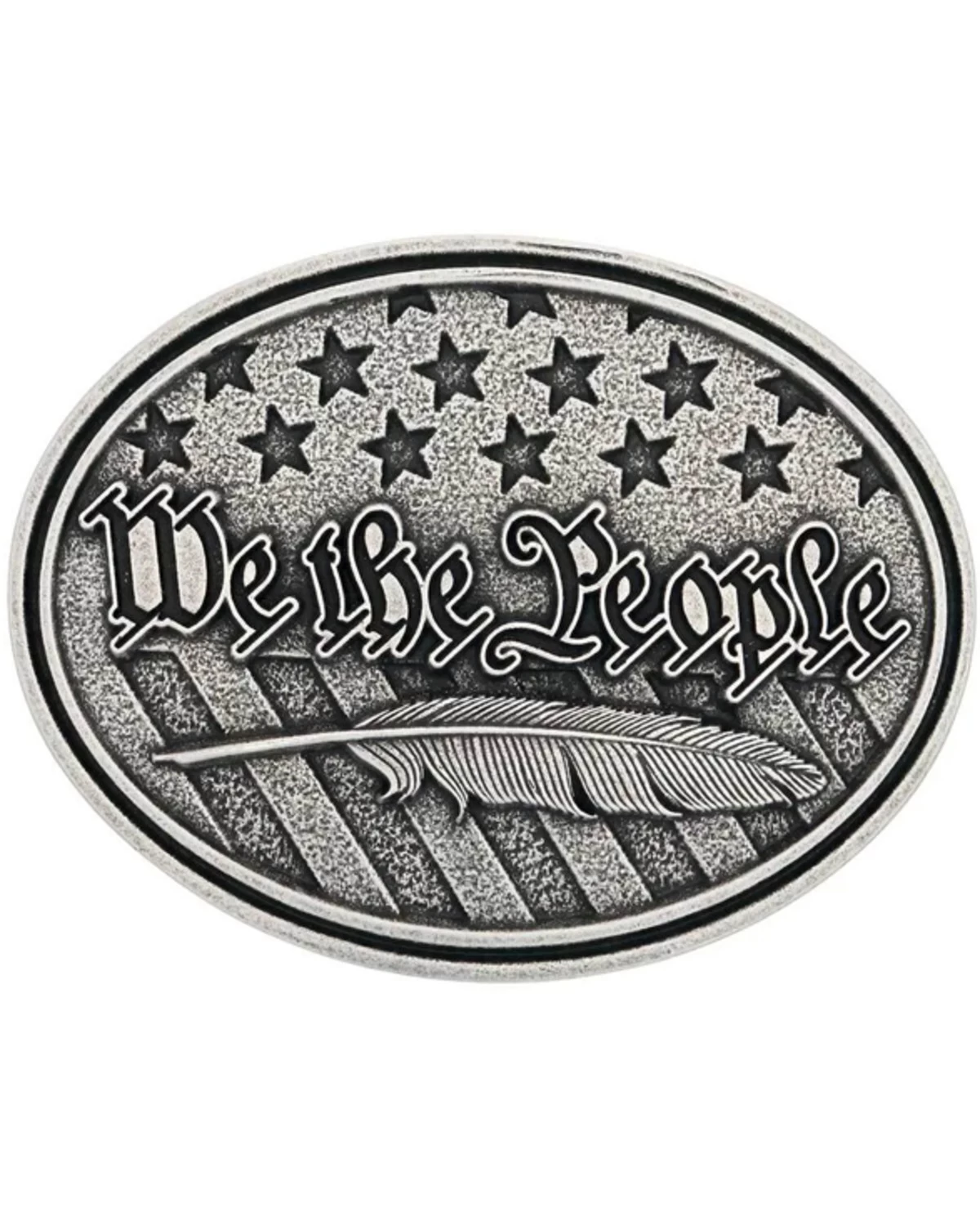 - Stars and striped inlay with “We the People” feather overlay