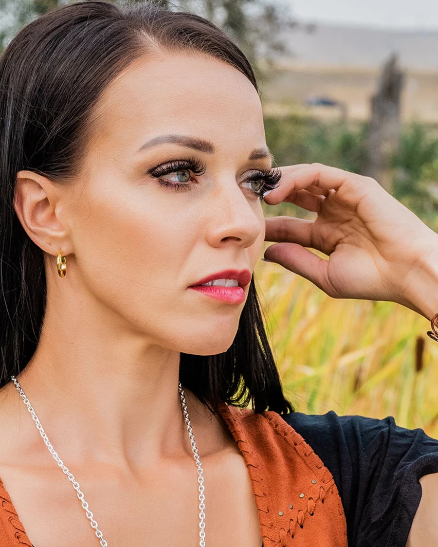 - They fasten to your ear with gold post backs.