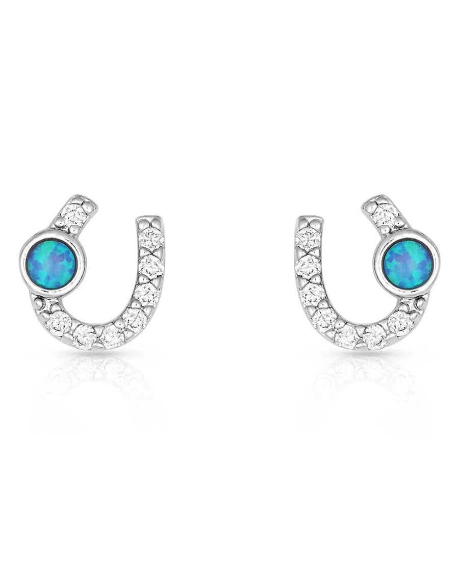 Montana Silversmiths Women’s Mini Clear Stone Horseshoe And Opal Earrings