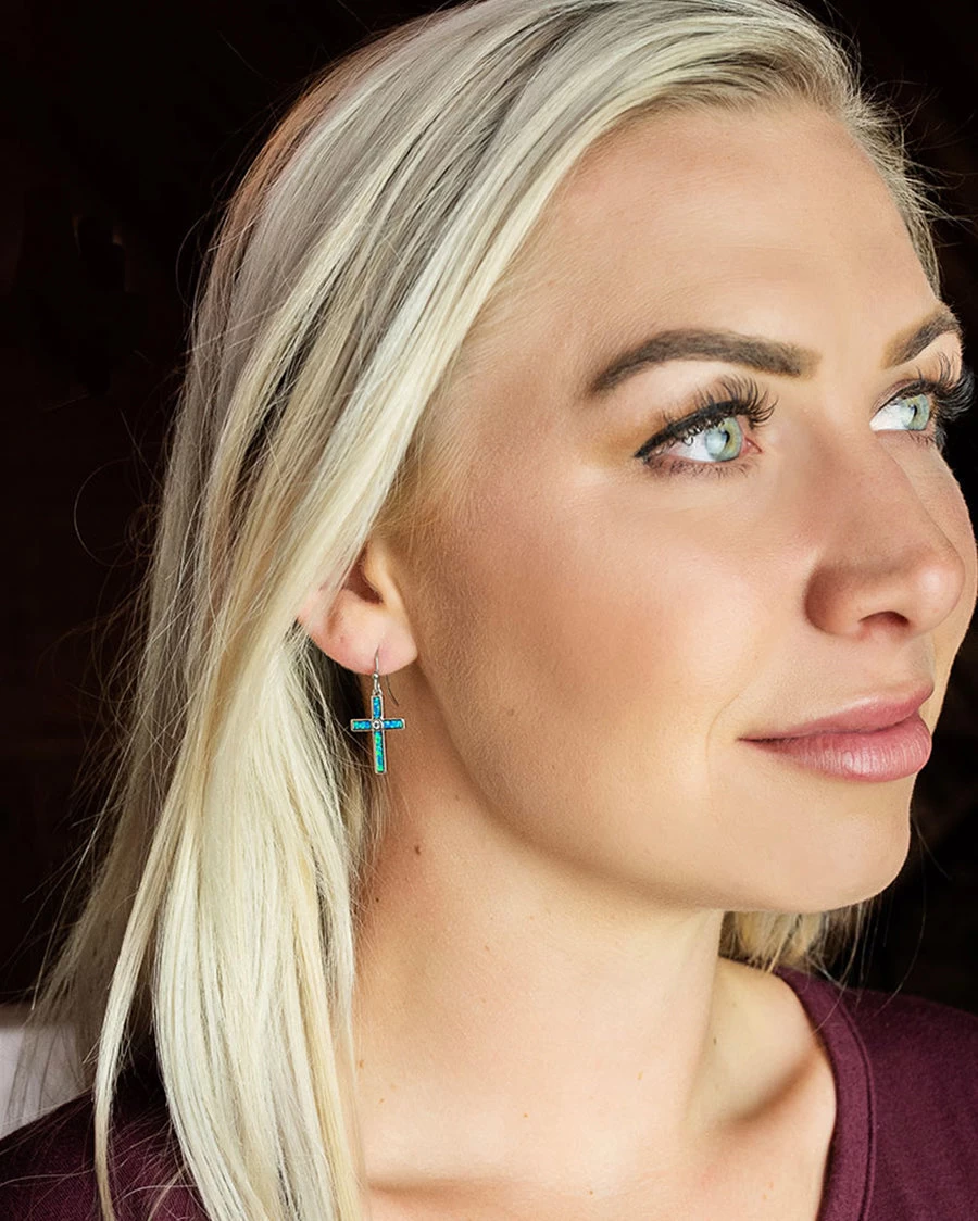 - These opal crosses with a center stone dangle from ears open to God’s word. Unique and vivid, these Montana Silversmiths’ earrings have a beauty like dogma, a reverence like dulia, and are perfect for a Sunday with the Lord or for a ride in the mountains, admiring the beauty of God’s creations. The cross pendants hang on hypoallergenic stainless steel French wires.