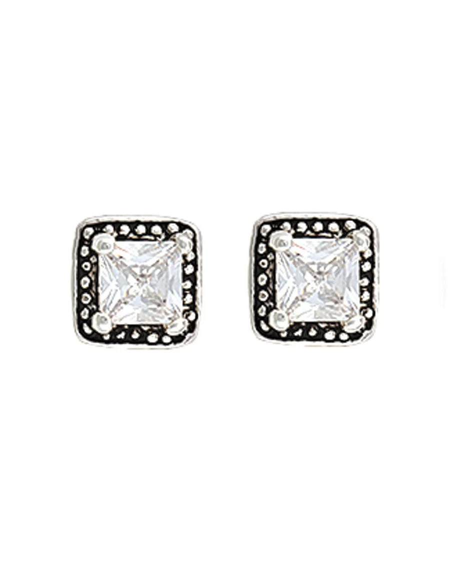 - Materials: Silver plate over a brass base. Cubic zirconia stones.
